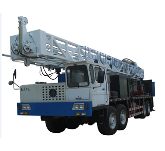 SDC1500型全液压车装钻机是勘探技术研究所最新研制的用于大口径水井、煤层气抽采井、浅层油气井等深度不超过1500米的钻井施工设备。采用汽车柴油机动力,全液压驱动方式,动力头设计最大提升力603kN,加压力200KN。全液压操纵形式,拧卸扣、吊装钻具采用液压控制,减少工人的劳动强度并增加工作效率;设有双卷扬机,方便辅助作业。可以采用27/8″、31/2″、41/2″、5″双壁钻杆等多种钻杆进行钻进,适应性强。底盘采用8×4驱动形式;动力机组采用国三标准柴油机和法式特变速箱及分动箱。