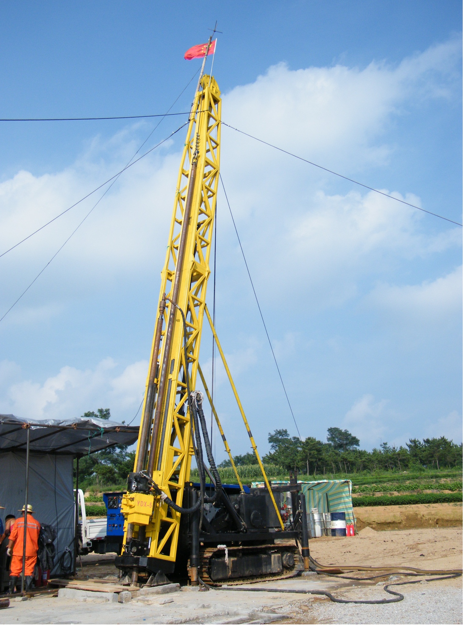 通过示范工程的实施,实现了包括YDX-5型全液压钻机、YWB-360/300/250型泥浆泵、配套泥浆固控及制备系统、CUG-2高精度钻探参数监测系统、高强度绳索取心钻杆、绳索取心液动锤、长寿命高效金刚石钻头和不提钻换钻头等国内现代先进钻探技术的综合集成,完成了国内2000m深孔钻探技术体系的建立。验证并完善了各项深孔钻探技术成果,创造和打破了当时国内多项深孔地质岩心钻探纪录,建立了我所工程施工的组织和实施队伍,提升了我国地质岩心钻探施工技术水平。初步形成了具有中国特色和国际先进水平的深部矿产资源钻探技术体系,基本解决了我国深部矿产资源勘查中的关键钻探技术问题,实现了深孔硬岩岩心钻探技术跨越式发展。