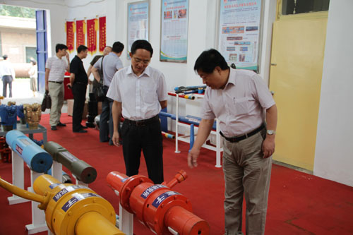 24日上午,冉恒谦副所长陪同林中湘局长一行到勘探所永清基地参观了在研的1500m车装全液压水井钻机。25日上午,高鹏副所长带领湖南煤田局的各位领导参观了我所成果展室、钻探工艺及器具展厅、冲击回转试验室,并对我所的各项成果进行了详细的介绍。