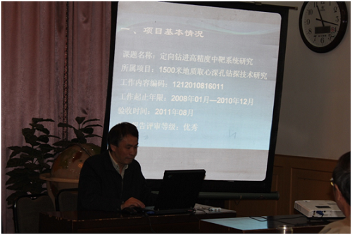 评审会上,副所长冉恒谦首先对我所2012年度中国地质调查成果奖的申报流程进行了简要介绍,并对评审工作的要求进行了说明。然后,各项目负责人进行了项目科研成果汇报,与会委员为各项目提出了许多好的意见和建议,经所学术委员会讨论,建议推荐 “定向钻进高精度中靶系统研究”等4项成果参加2012年度中国地质调查成果奖的评选。