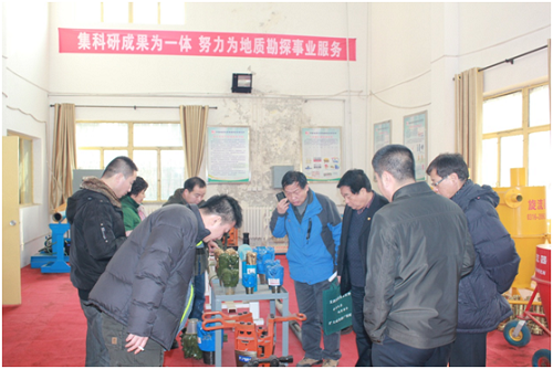 调研期间,地质钻探室主任苏长寿、副主任冯起增,钻探设备室王庆晓副主任、刘凡柏总工,定向钻探室副主任胡汉月及科技开发处处长孟庆鸿等分别向考察组介绍了我所YDX系列岩心钻机、KD坑道钻机、SDC水井钻机研制和应用、定向及对接井钻探技术、液动冲击器、事故处理工具、多工艺反循环技术、复杂地层取心钻具及我所所属聚力公司管理等情况。