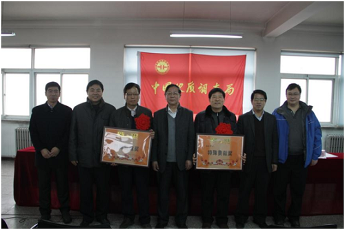 副所长冉恒谦宣读了《关于表彰2012年度先进集体先进工作者文明集体和给予特殊贡献奖励的决定》。所长张金昌、副所长徐刚峰对荣获特殊贡献奖的地质钻探室、钻头中心领导班子颁发了证书。