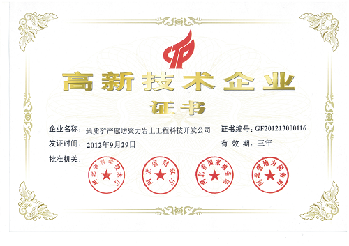 近日,我所所属聚力公司通过高新技术企业复审(2012.11-2015.11)(证书编号:GR201213000116)。2009年11月,聚力公司首次通过高新技术企业(证书编号:GR200913000132)的认证以来,我所每年皆按照高企的要求准备各项工作,先后完成了公司科研项目立项等管理制度、专利权转让与独占许可、产品检测报告、科技查新报告、企业标准、研发设备、高新技术企业研发费用及高新技术产品销售收入专项审计报告等系列工作,并通过网上申报、精心准备书面材料等,2012年8月份由廊坊市科技局上报河北省科技厅复审委员会,近日,下发了证书。