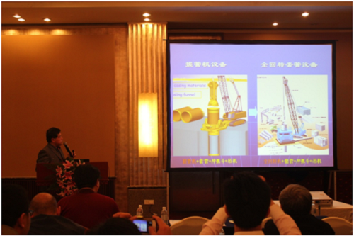 我所作为峰会的协办单位应邀参加了峰会,我所地质钻探室总工宋志彬教授级高工、刘晓林工程师、朱芝同工程师与参会人员共同探讨了全套管设备在桩基础领域中的施工与应用。并对我所自主研发的全回转钻机、搓管机产品、全套管配套机具进行了宣传与推广。宋志彬在会上作了《大口径全回转套管设备和施工工艺的研究》的报告,展示了全回转钻机的最新研发成果以及搓管机和套管产品在国内外近二十年的应用情况和典型工程实例。此次峰会进一步提高了我所在桩基础行业内的知名度与影响力。