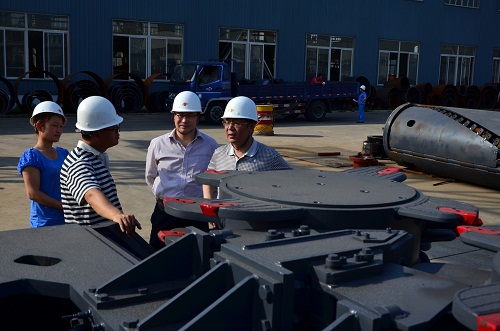 5月20日下午,所党委书记、所长张金昌,副所长冉恒谦前往所中试基地对ZC32型双轮工作装置进行了现场检查和指导,对双轮铣项目组取得的研究成果给予了较高的评价,并对钻头中心生产加工能力和生产管理能力也给予了肯定,同时对市场拓展提出了要求。