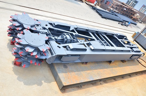 双轮铣成槽装置是双轮铣连续墙设备的核心装置,该项目于2009年我所建议提出,由中联重科上海分公司成立项目组,与我所联合进行了项目预研究。2011年,中联重科总公司将此项目申请为科技部的“十二五计划项目”,并将项目分解为两个部分,其中,我所承担项目核心部分——双轮铣成槽装置,经过方案论证、图纸审核、生产加工组装,达到了工业性考核条件。此项目的初步研究成功,不仅可以解决国内双轮铣完全依赖进口的被动局面,而且可以降低施工成本,提高施工效率,同时也标志着我所具备了研制大型施工设备的综合能力。