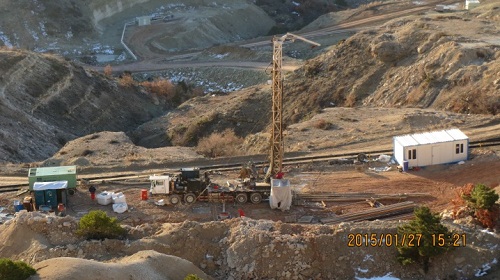 由我所研制的SDC-1500全液压顶驱汽车钻机于2014年11月底开始参与土耳其贝帕扎里碱矿四期钻孔施工,目前已完成8口垂直井,总进尺3700米的钻井工作量。其中, 3月份,成功完成的V049B垂直井,从开钻到二开固井作业共历时14天,创该工地单井工期最短纪录。