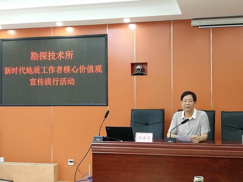为充分发挥思想政治工作凝心聚力的作用,7月24日,我所组织全体干部职工开展新时代地质工作者核心价值观宣传践行活动,活动由党委书记、所长张金昌主持。