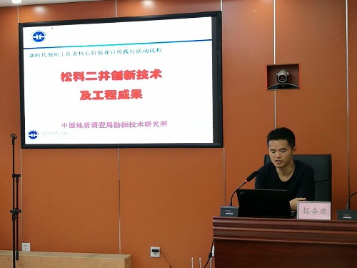松科二井指挥部钻井室主任、深部钻探室王稳石高级工程师以《松科二井创新技术及工程成果》为主题作事迹报告,介绍了松科二井指挥部全体工作人员在自然资源部中国地质调查局的领导下,坚持自主创新、勤奋探索、打破固有思维和传统技术束缚,创新的大口径同径取心技术体系与高温泥浆技术体系,最终实现松科二井科学目标和工程技术目标的重大突破。