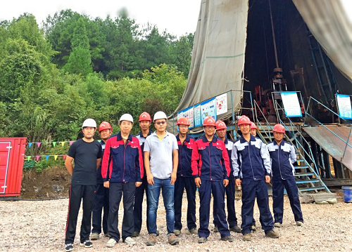 8月18日,南方页岩气调查“黔铜地1井”顺利开钻。上午8时,现场钻探、地质、录井技术人员和机台工人等20余人集合井场,在霏霏细雨中举行了简单而隆重的开工式。随之钻机的轰鸣,标志历时2个多月的钻前准备和钻前工程基本结束,项目工作顺利转入钻探施工和地质录井阶段。