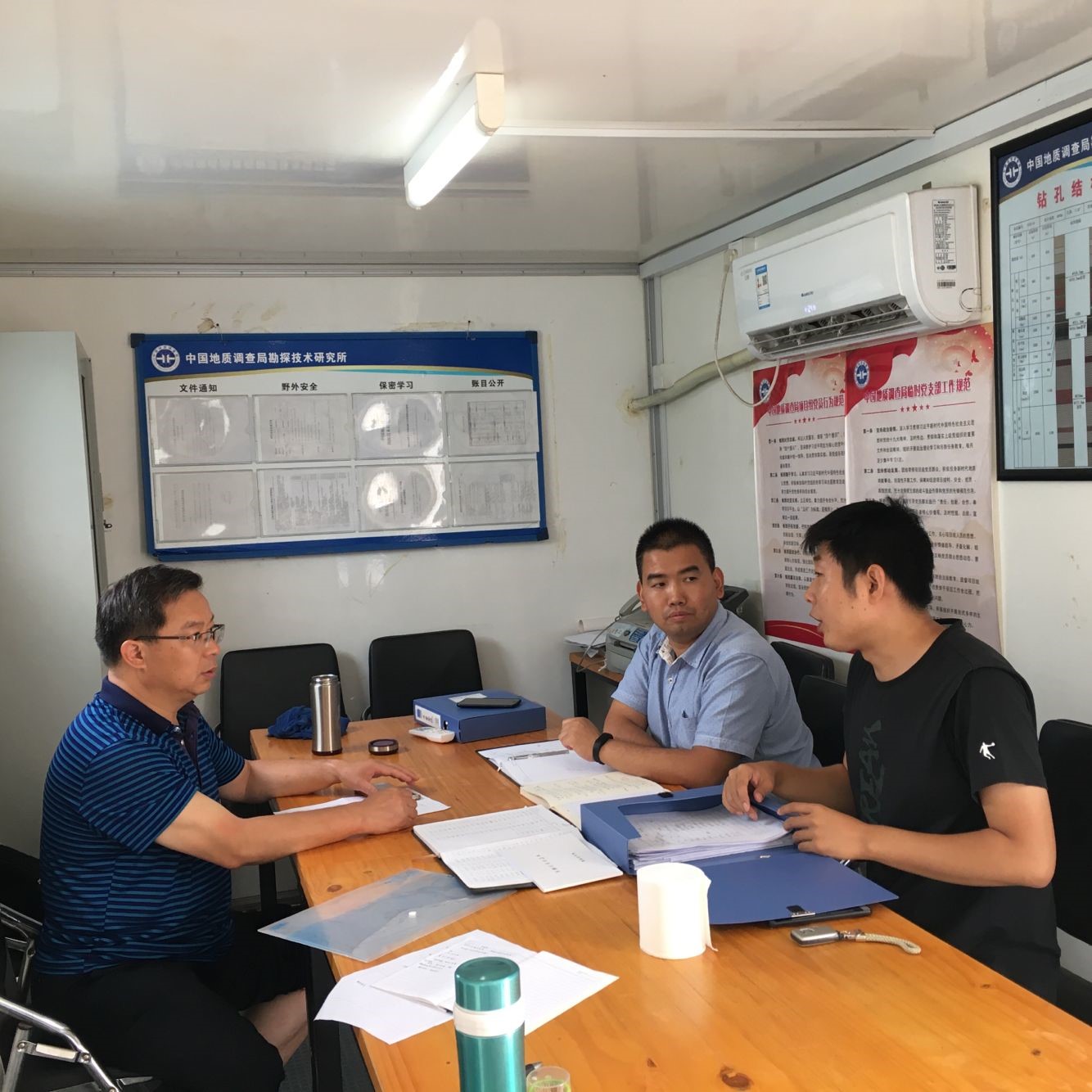 6月18至6月19日,我所先后对所大院、出租门面房、龙河中试基地、天津潘庄凸起构造区地热勘查(京津石地热勘查)野外施工现场进行系列安全生产大检查。