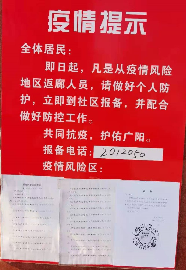 具体措施:一是在大门口、食堂和办公楼门口张贴疫情防控行程码,及时掌握职工行程轨迹;二是持续对家属区进行消毒,确保消毒杀菌工作落到实处;三是随时更新疫情中高风险等级地区清单。