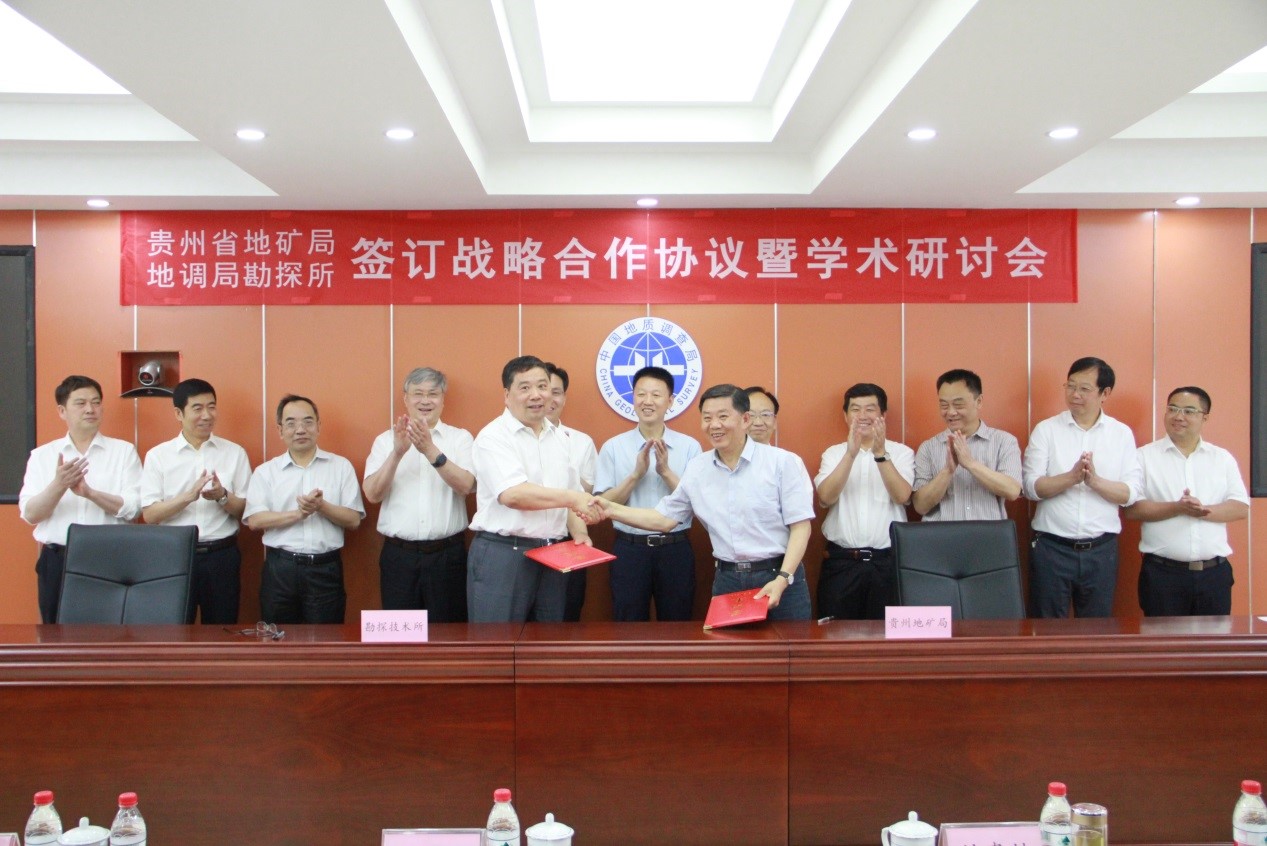 为进一步面向国家重大需求,推进地质事业协同创新与融合发展,深化“产学研用”合作模式,促进高层次人才联合培养,6月17日-18日勘探技术所与贵州省地质矿产勘查开发局(以下简称“地矿局”)签订战略合作协议并进行学术研讨。中国地质调查局党组成员、副局长李金发同志出席会议并见证双方签约。