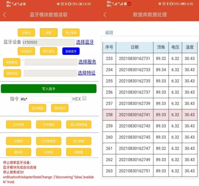 绳索取心孔内数据记录仪是由中国地质调查局勘探技术研究所研究设计的专门用于绳索取心钻进孔内数据记录的仪器,可连续记录不同孔深对应的顶角及温度。仪器使用时与打捞器连接,在打捞岩心的过程中自动测量最新的钻孔顶角数据,在地面利用智能手机通过蓝牙方式进行无线数据读取,无须再用测斜仪专门进行钻孔顶角测量,既可以准确掌握每个回次的钻孔最新顶角数据,又省去了每隔50米或100米的测斜时间,大大减少绳索取心钻进辅助作业时间,提高钻进效率。